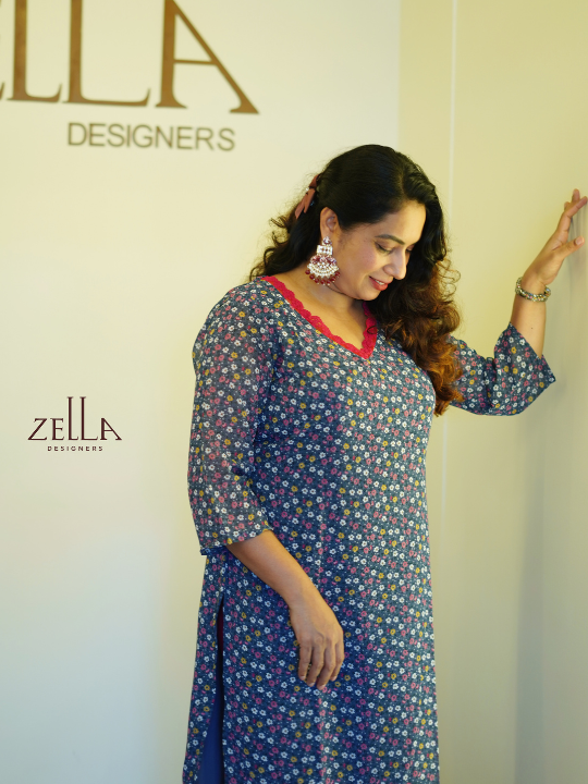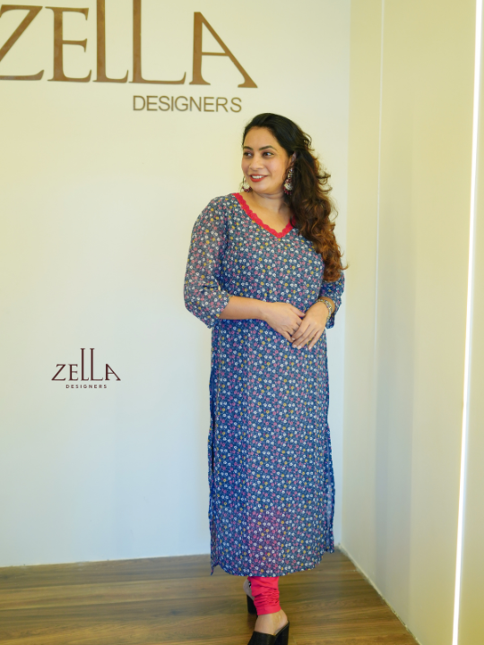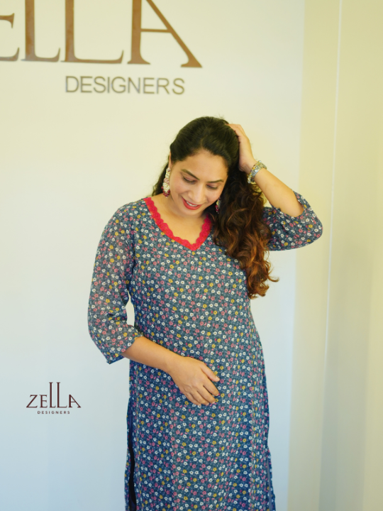 This grey printed designer kurthi combines subtle sophistication with elevated detailing for a refined wardrobe addition. Tailored for women who appreciate comfort without compromising style, it features an elegant V-neckline and 3/4th sleeves that enhance its clean, structured silhouette. The soft fabric drapes naturally, while the delicate floral print adds a graceful touch of artistry to the muted grey base. Light and breathable, it’s designed for daylong ease and polished presence. Ideal for both casual refinement and understated occasions, this kurthi offers a poised balance of elegance and wearability.
